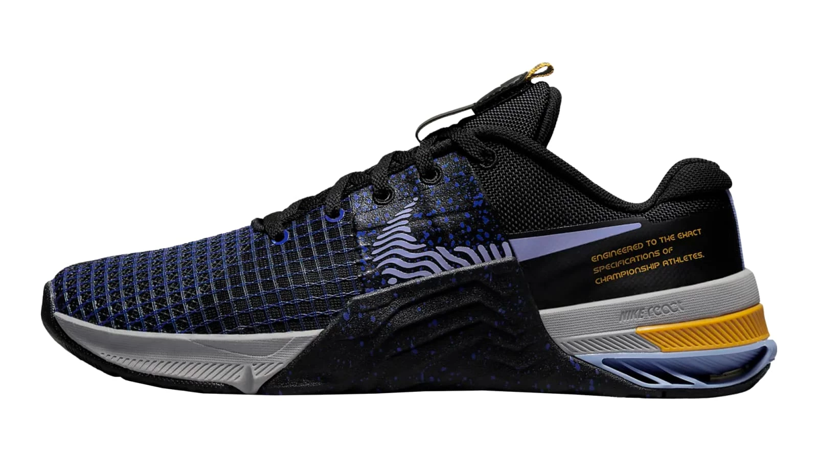 The Metcon 8’s lightweight mesh and strategically textured overlays keep your feet cool without sacrificing durability. Rubber tread on the outsole and up the side of the shoe provides directional traction from the training room floor to the pavement, and flywire cables integrate with the laces to secure the midfoot.
