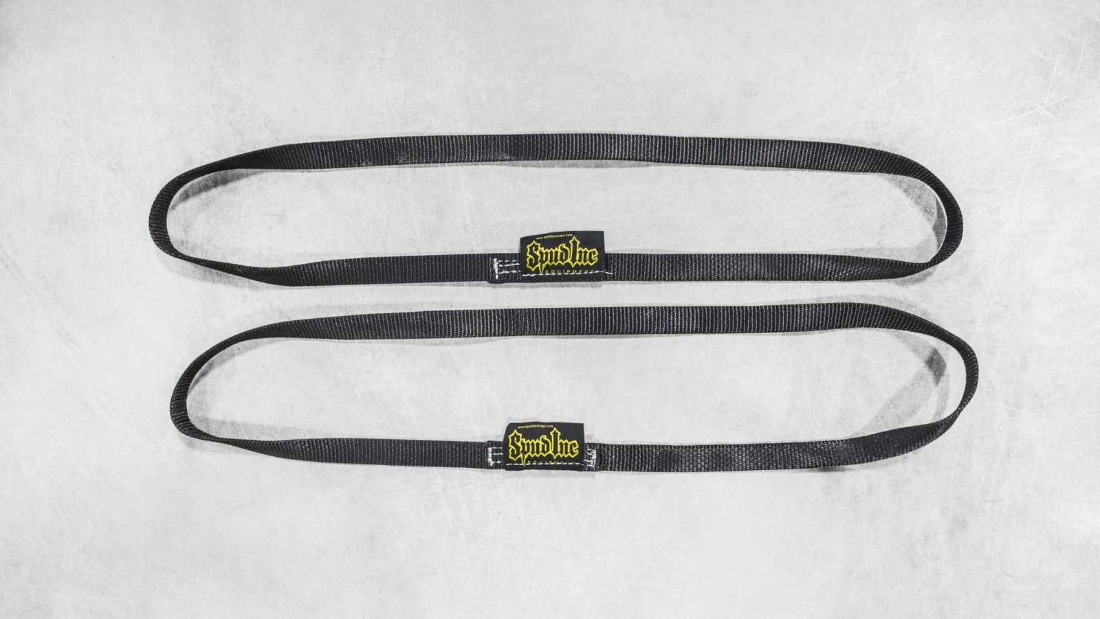 We use Spud Inc Stump Straps to hang weight from a straight bar for squats, cleans, presses, curls and any number of different exercises.